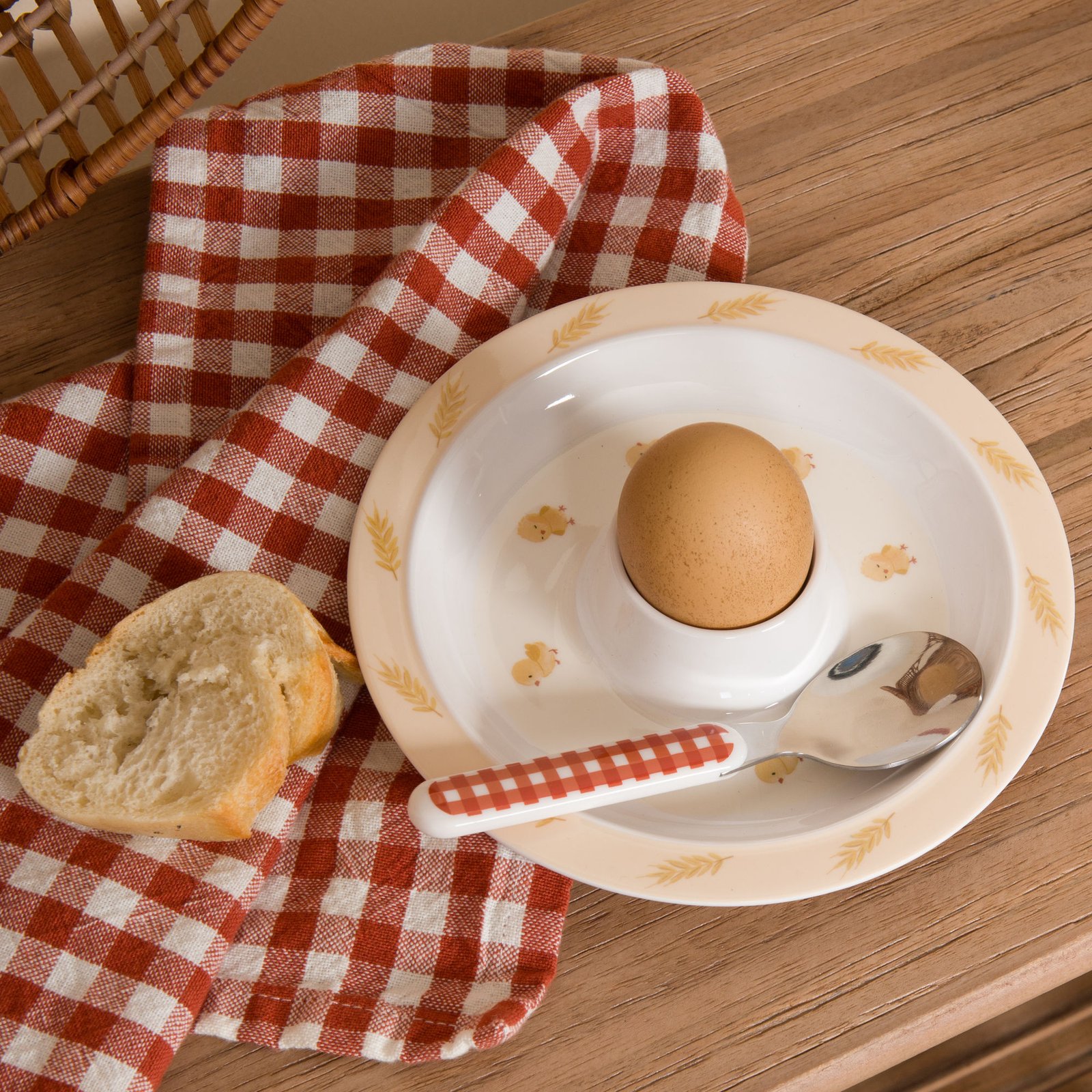 Decorated melamine egg cup designed for the children’s meal range. Lightweight and durable, it offers a safe and sustainable alternative to traditional egg cups. Its playful design and compact dimensions (18x18x2 cm) make it easy to display in stores and appeal to family customers. An ideal product to complement a practical and aesthetic children’s meal offering.