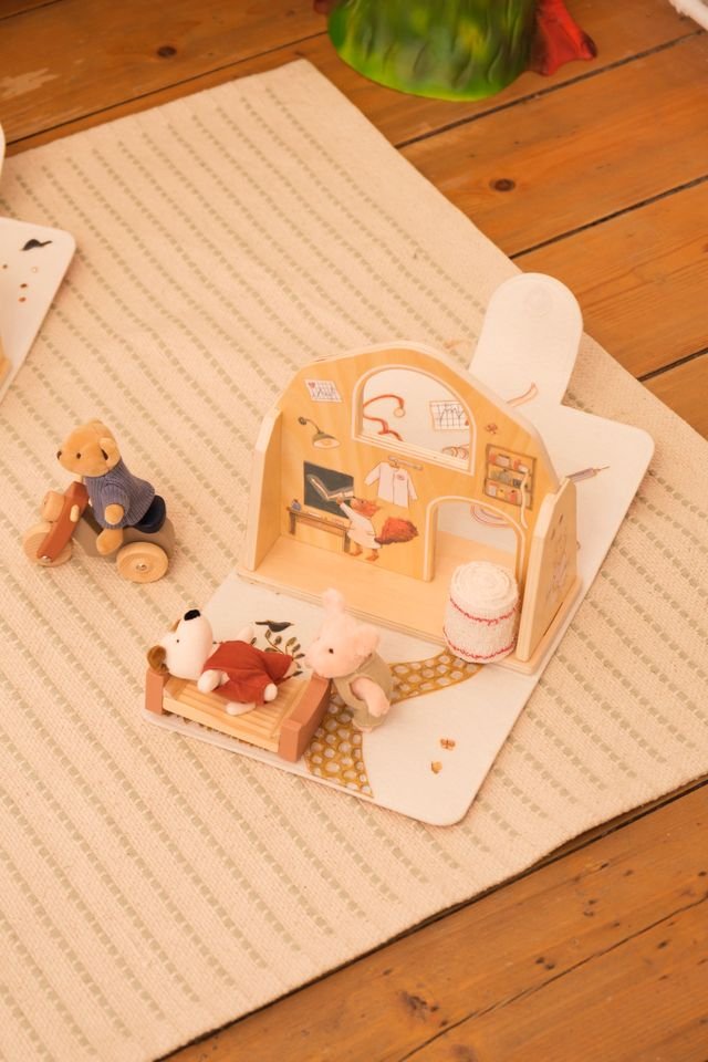 It opens and sets up like a small doctor’s office with cute details and accessories for endless stories.