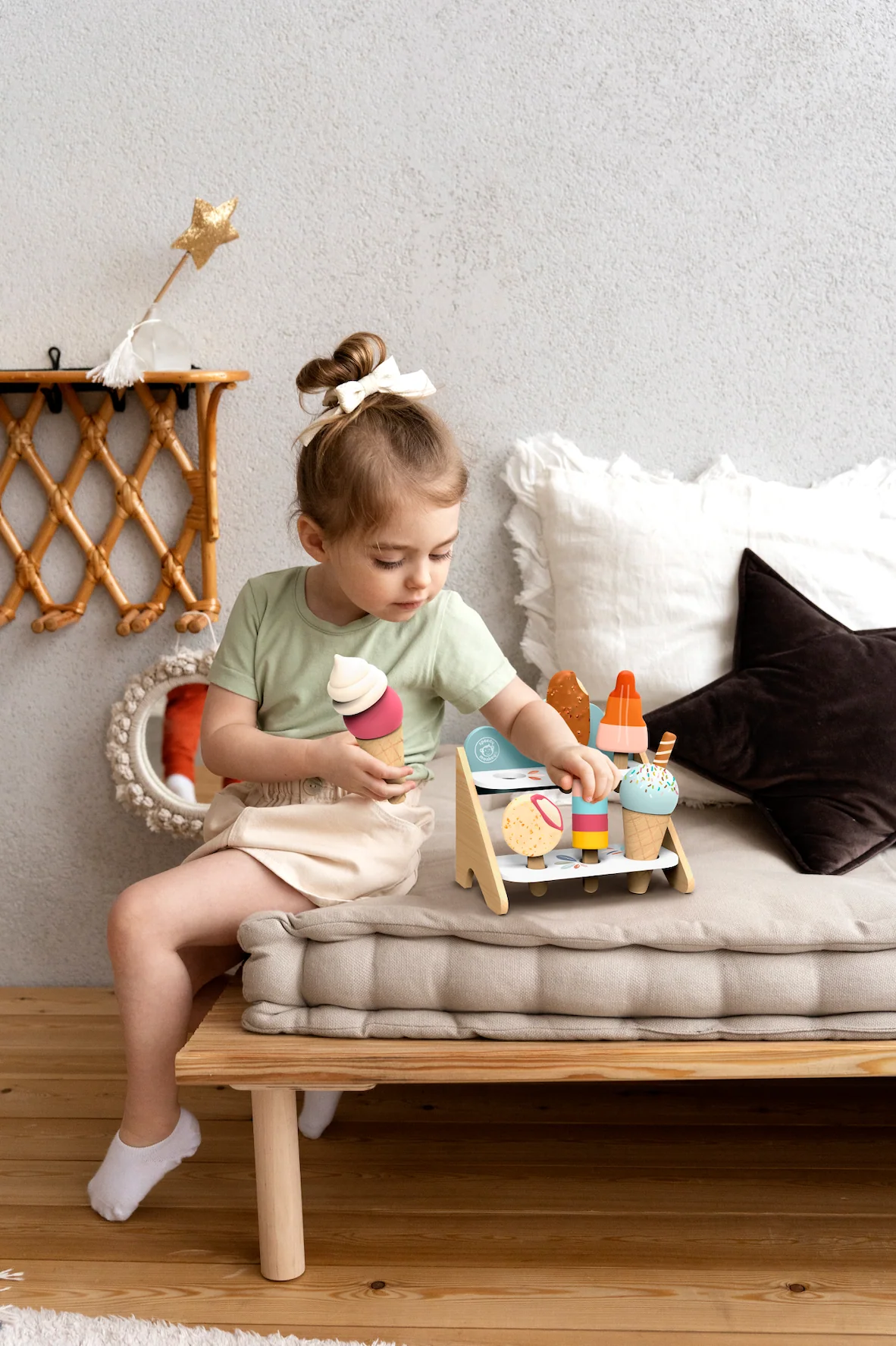 Perfect for imaginative role-play, this ice cream shop encourages storytelling, social interaction, and sensory exploration. Whether playing alone or with frieSpecifications