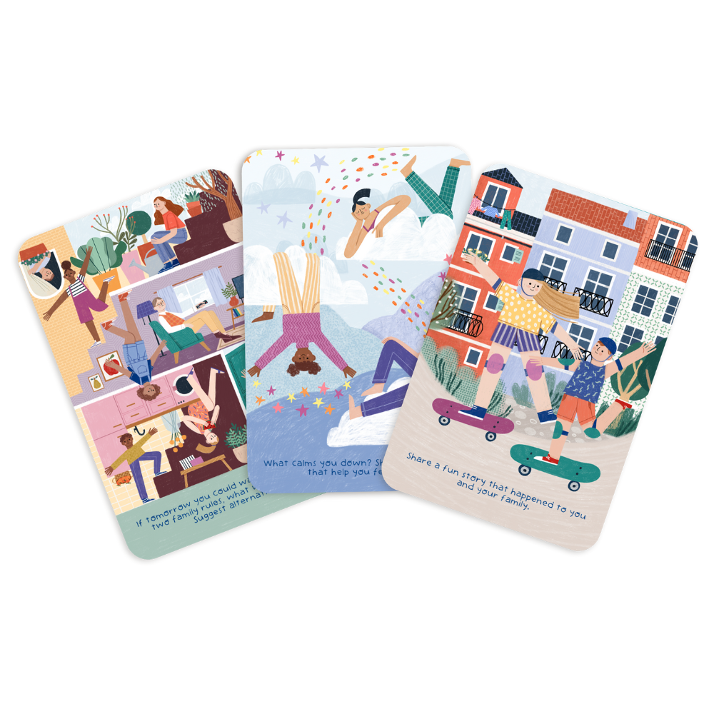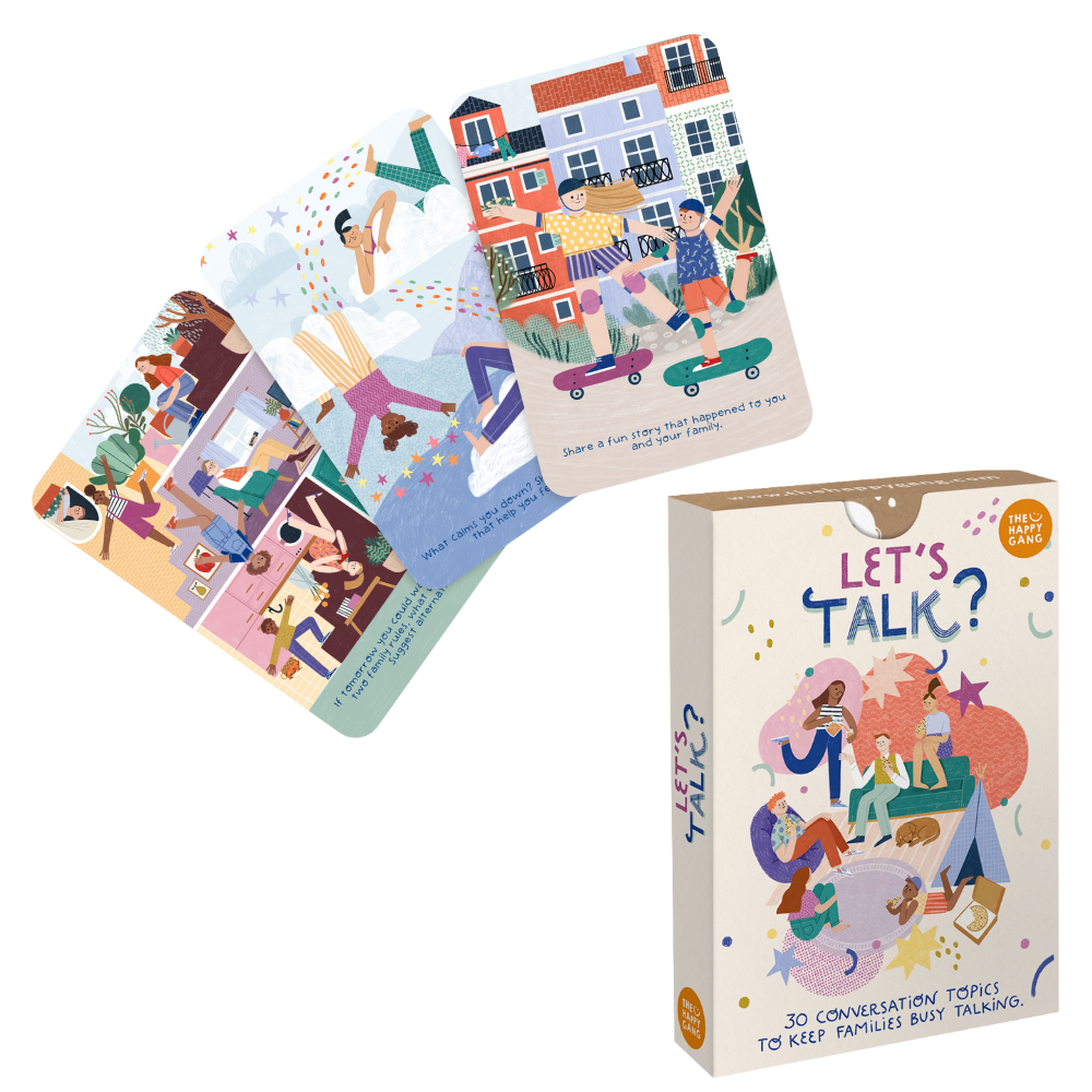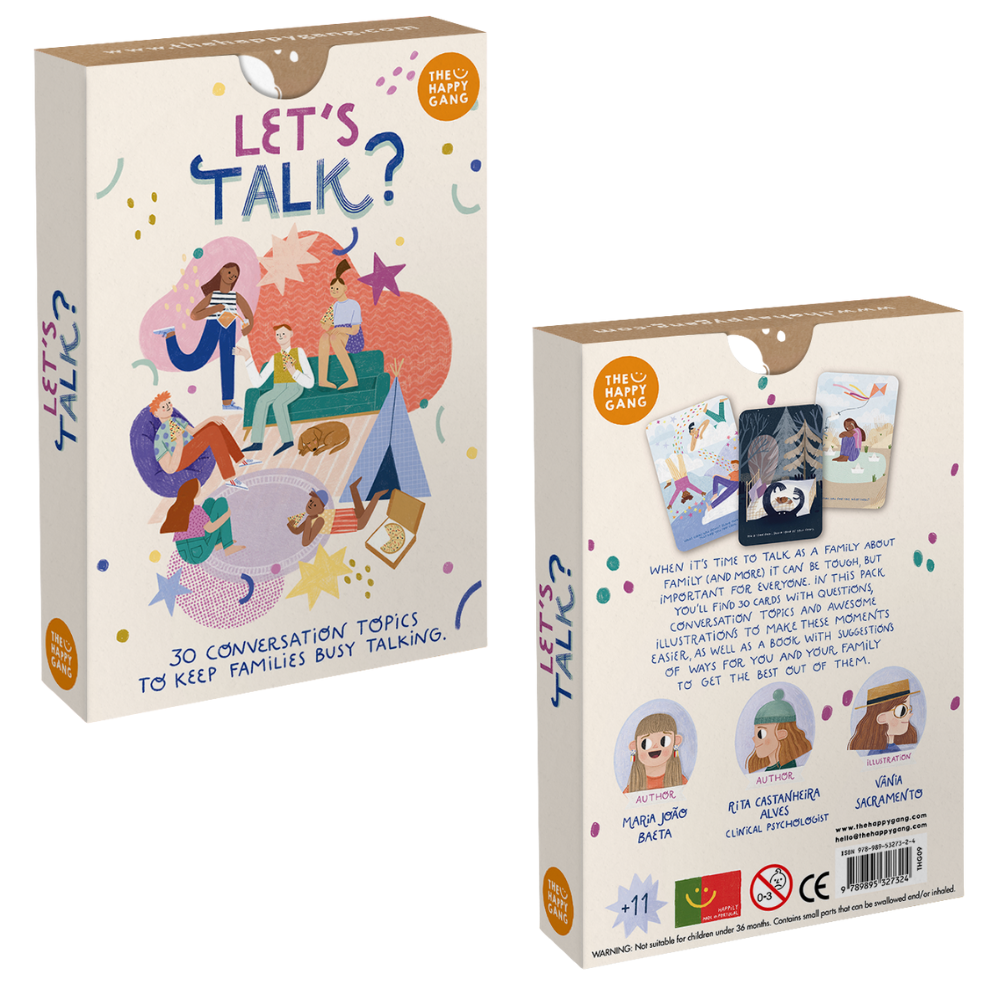 Family conversations and conversations about family (and beyond) can be challenging, but they are very important for everyone. The “Let’s Talk” flashcards from The Happy Gang feature a set of 30 cards with different questions and themes, accompanied by a comprehensive guidebook with practical suggestions for use.
