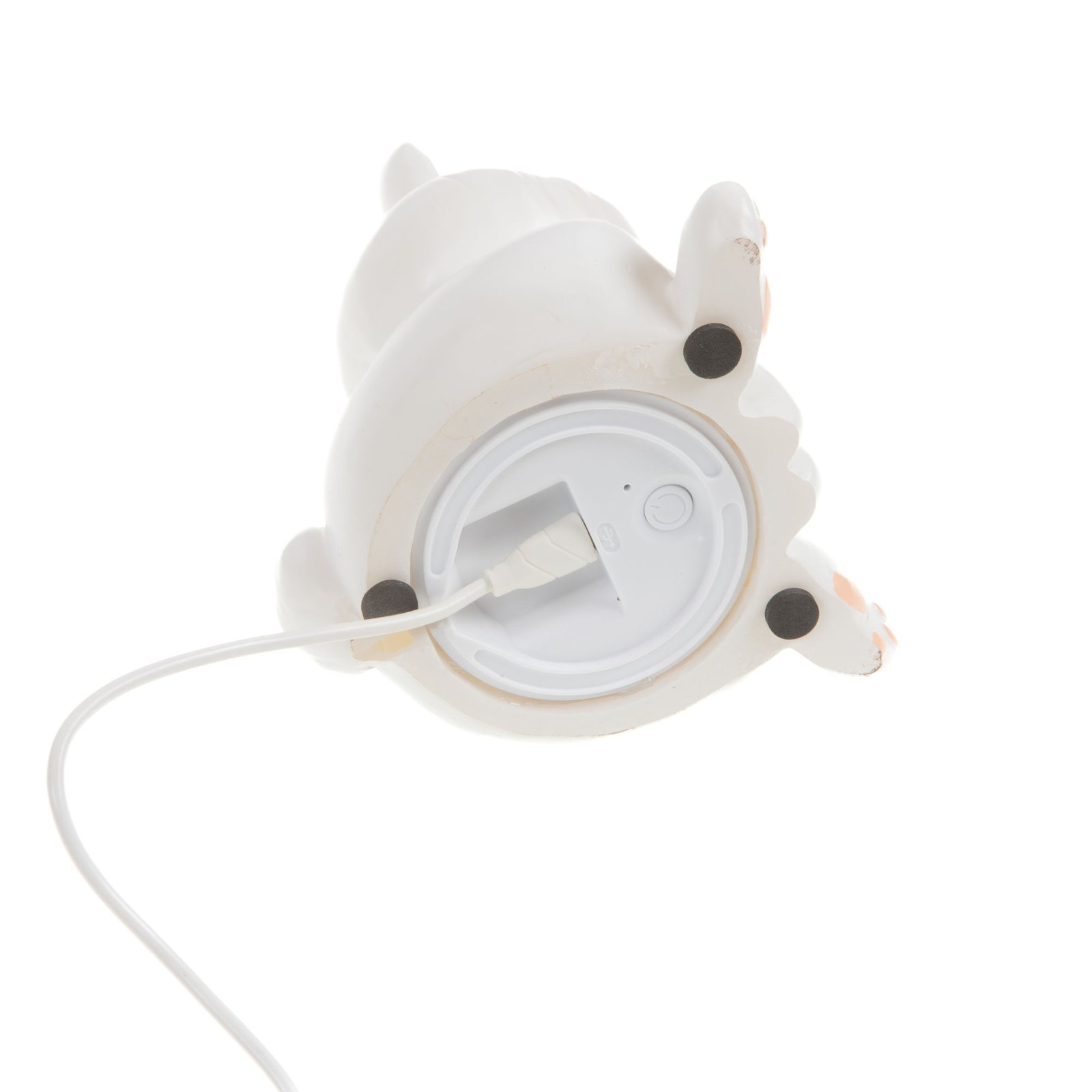 Compact polyresin night light featuring a soft and soothing bunny design, perfect for a dedicated children’s room offering. Battery-operated, it provides a portable and safe lighting solution. Its small dimensions (18 cm in height) make it easy to display in stores and resell. This product is ideal for customers seeking functional and playful decor.