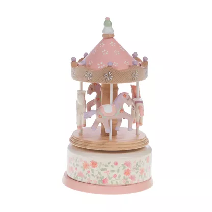 Let yourself be charmed by this “Ballerina” carousel with its soft and poetic design. Its little pastel horses turn delicately, bringing a magical and nostalgic touch to your child’s room. Compact and lightweight, it can easily be placed on a shelf or chest of drawers to amaze young and old a like. MELODY: At the clear fountain