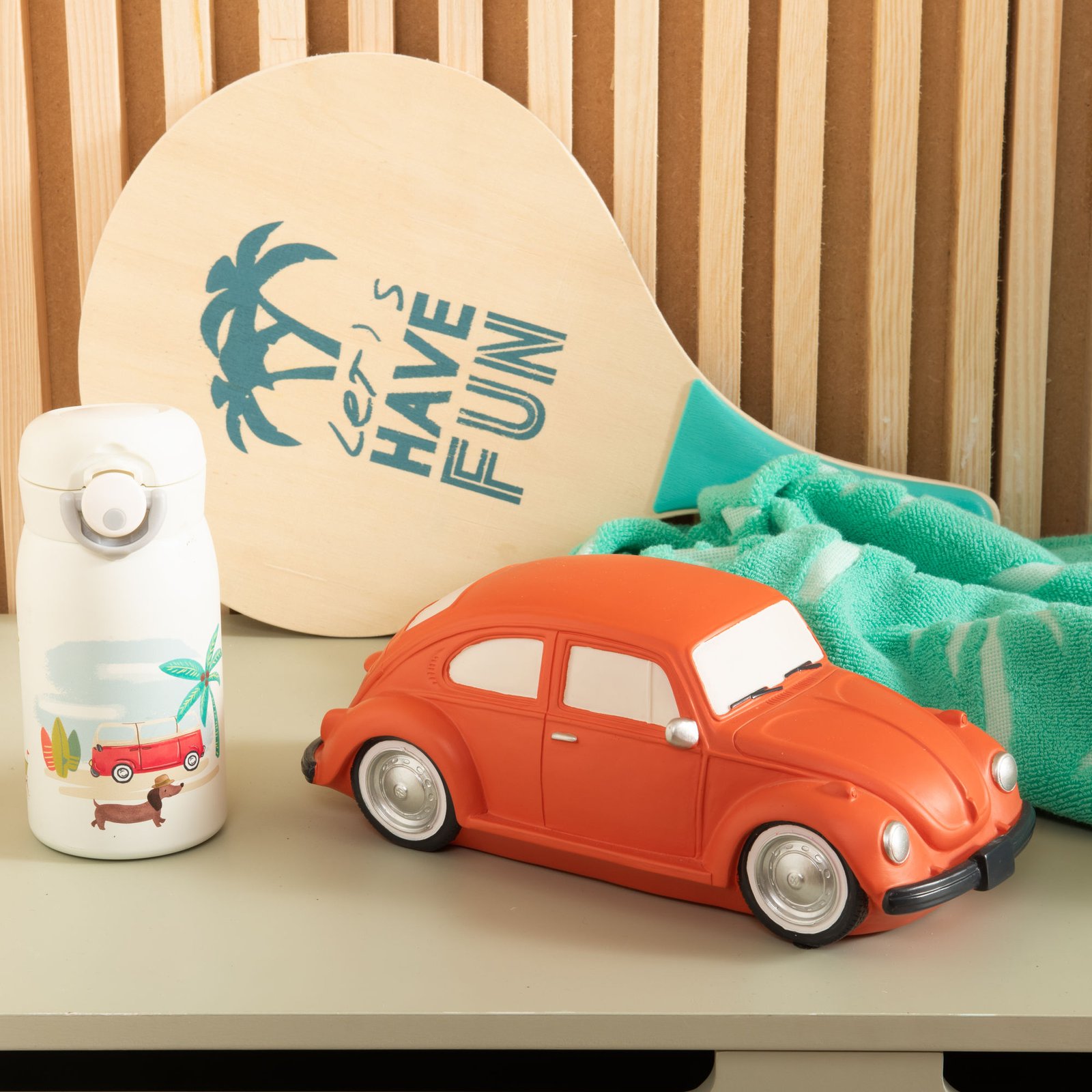 This vintage car-shaped night light made of resin is perfect for enhancing a children’s lighting range. Compact (29 cm tall) and lightweight, it operates on batteries, making installation hassle-free. Its playful and colorful design appeals to families looking to combine decoration and functionality in children’s rooms.