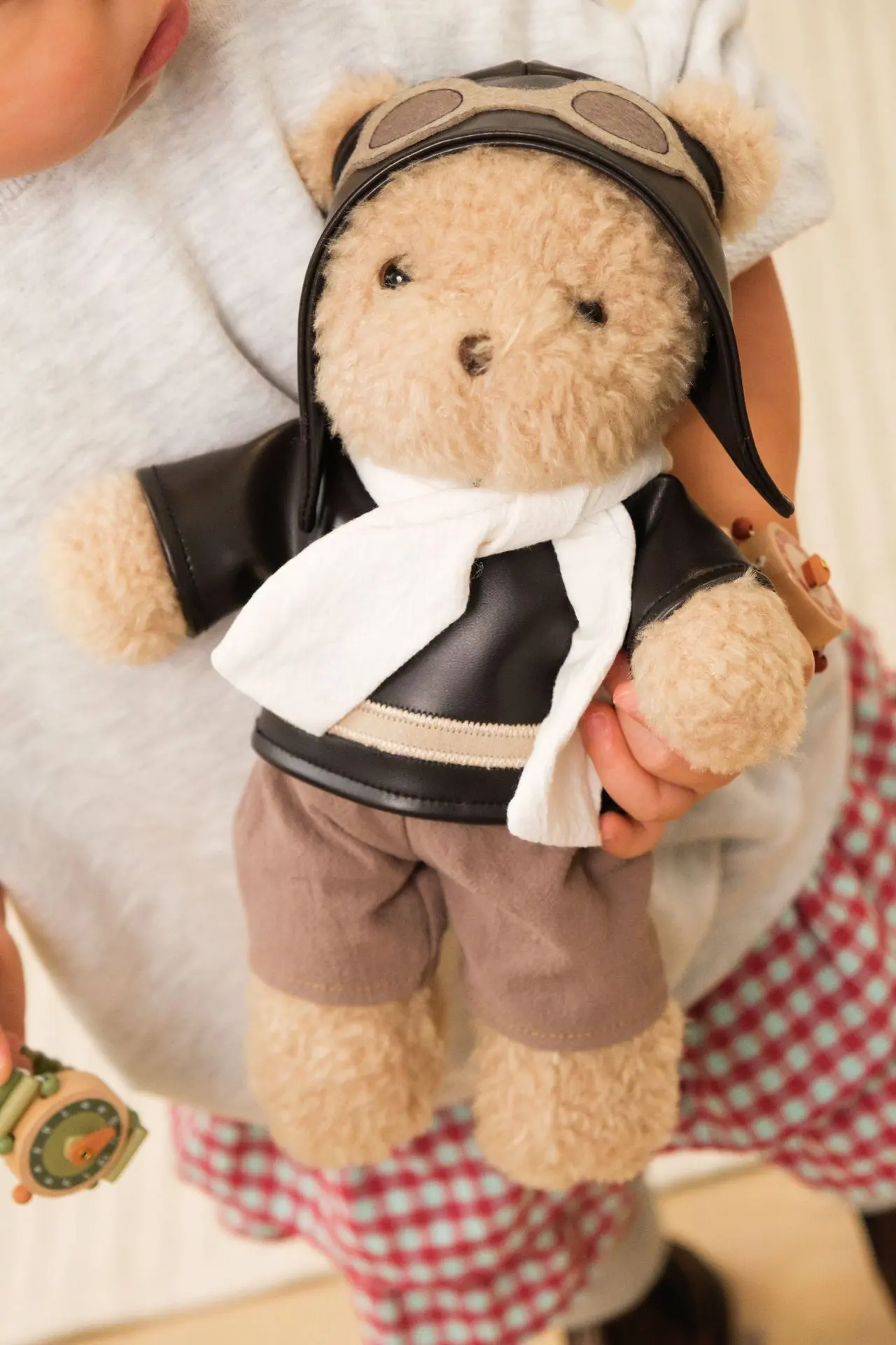 The cute Pilot Bear by Egmont Toys is ready for takeoff! Dressed in pilot style, a leather-look jacket, hat and scarf, he is a unique plush gift for little explorers.