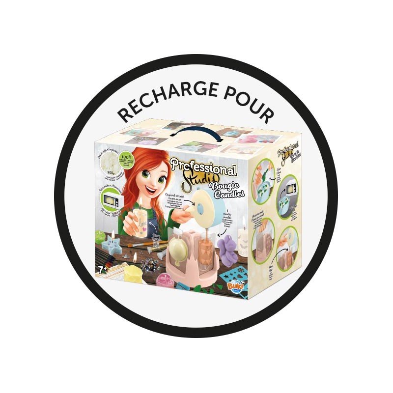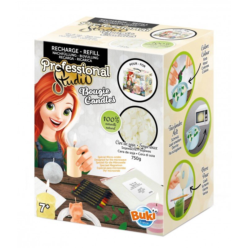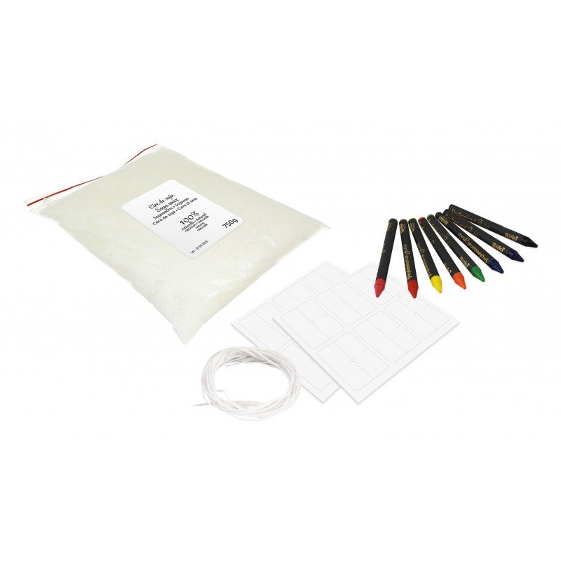 Included : 750g soya wax, cotton wick (5m), 8 crayons, 1 wick support (cardboard).